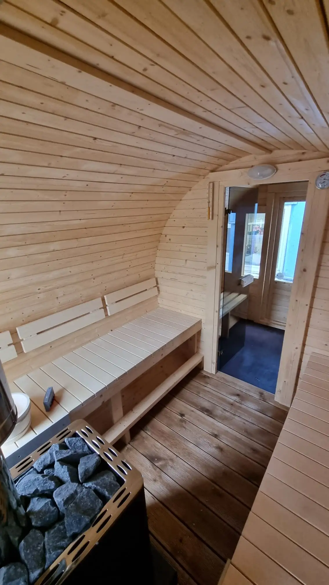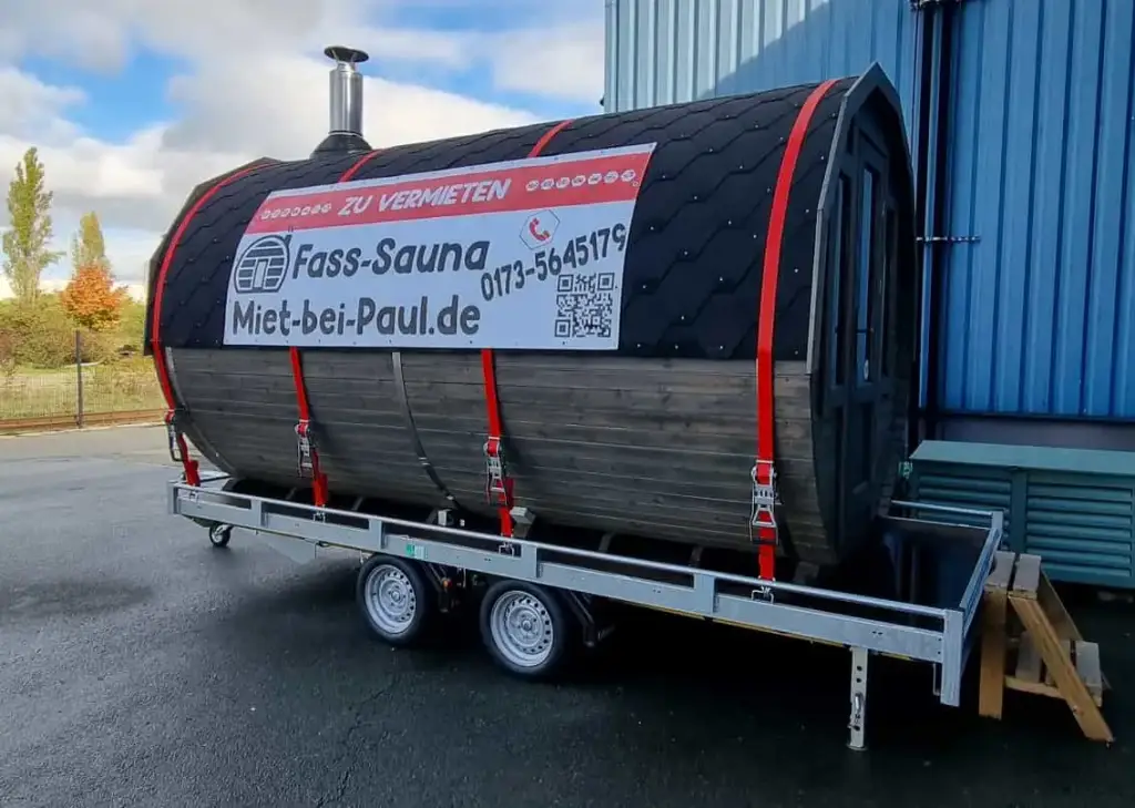 Entspannung in deiner persönlicher mobilen Fasssauna. Das 6m lange Gespann mit der Fasssauna kann gebracht oder abgeholt werden. Auf einer der beiden Liegeflächen von 2,70m lässt es sich wunderbar relaxen. Im 1,3m großen Vorraum kann man sich gemütlich auf die Saunagänge vorbereiten. Einem unvergesslichen Tag steht somit für bis zu 8 Personen nichts mehr im Wege.